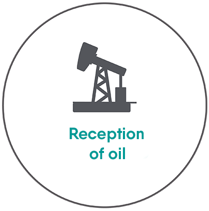 Oil is received through pipelines and automatic measurement units.
